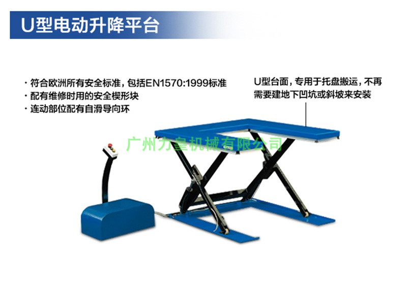 ▲ U型臺(tái)面,重型設(shè)計(jì)帶超長臺(tái)面,專用于托盤搬運(yùn),超低型臺(tái)面,不再需要建地下凹坑來安裝;